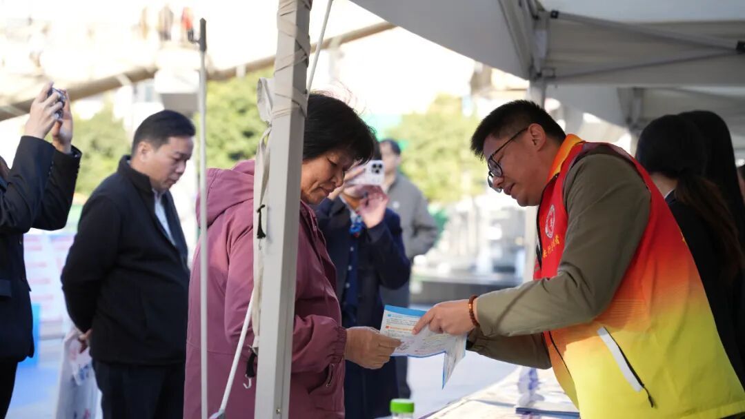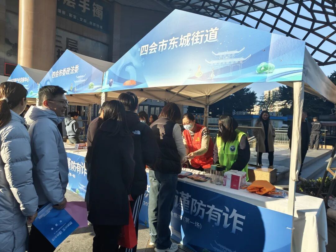 主舞台两侧的防诈展板与反诈咨询摊位